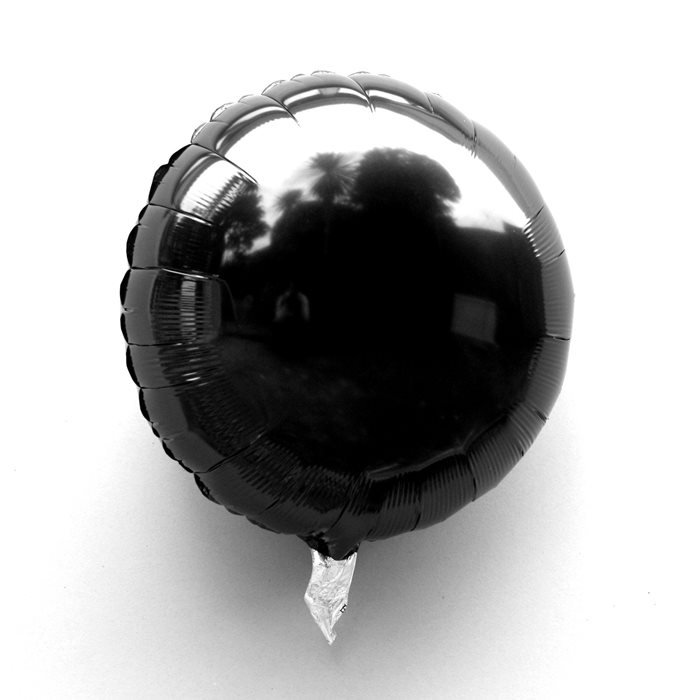 בלון מיילר עגול 18" - שחור + חוטי פרנזים -חוט כסוף