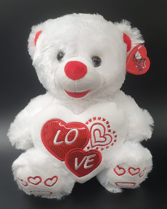 אזל במלאי דובי 30 סמ- לב לבן LOVE לבבות