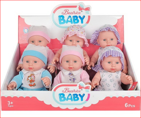 בובה עם כובע בן ובת איכותית 12 אינץ מנגנת פלסטיק רך 6 יחידות בדיספליי
